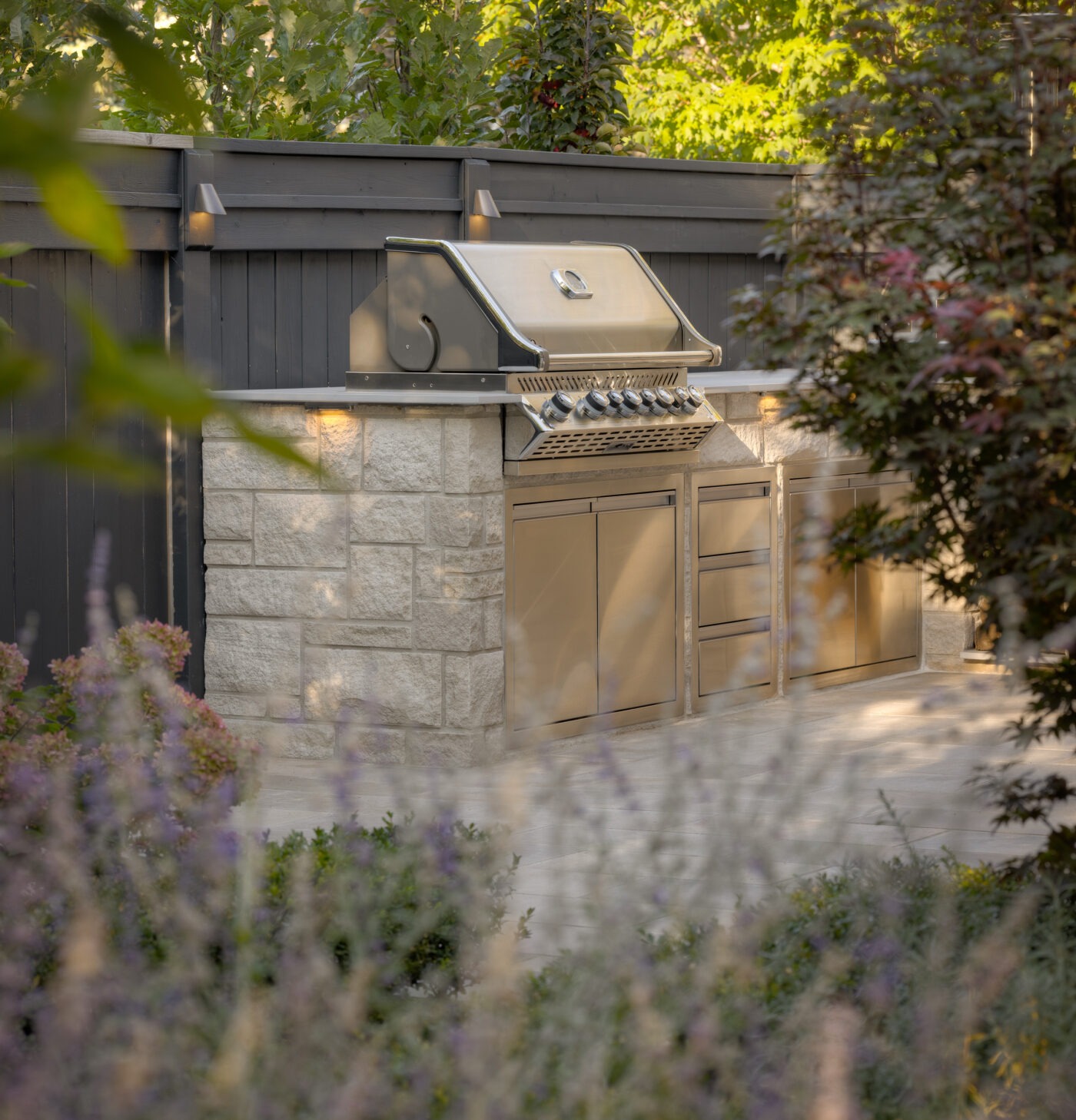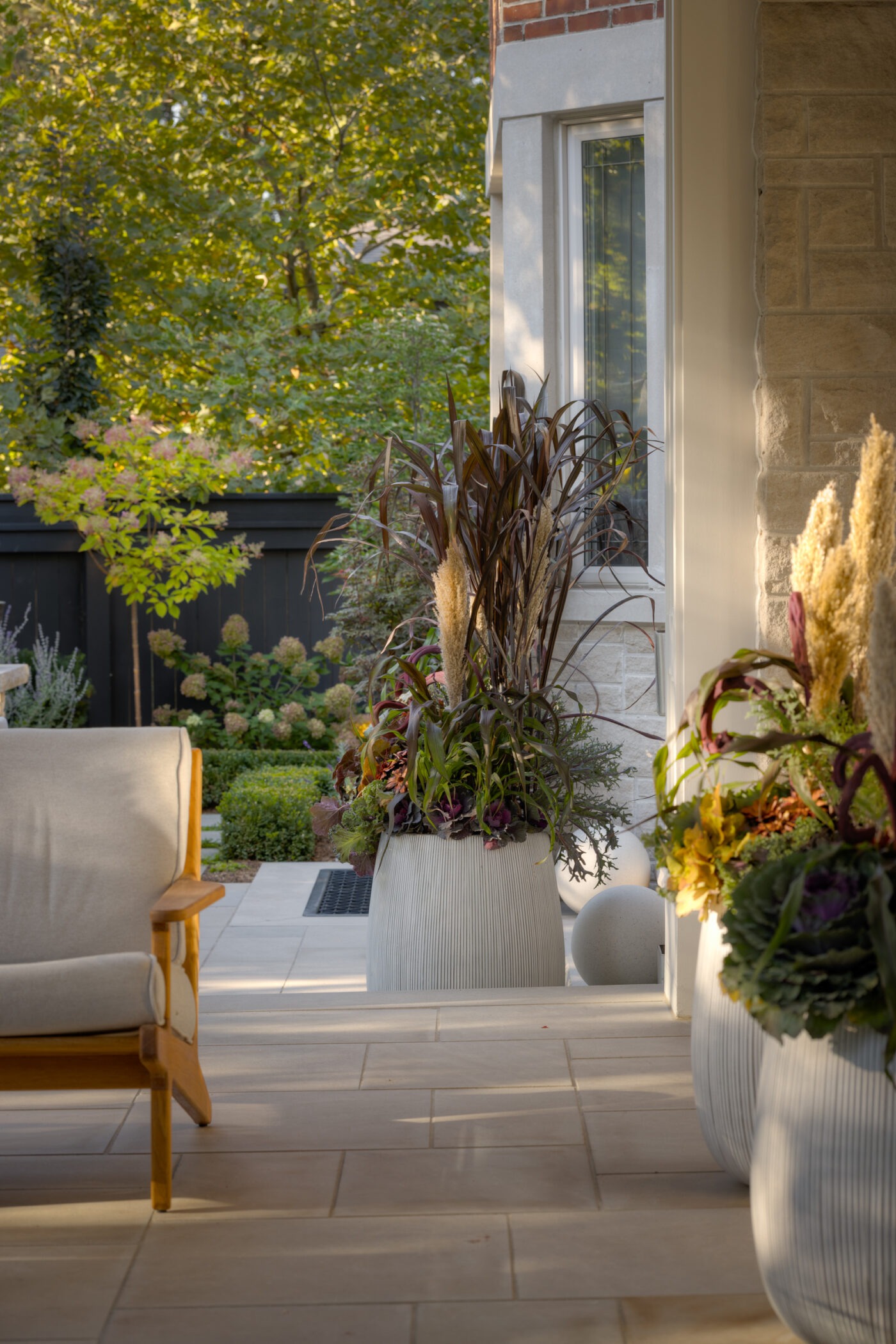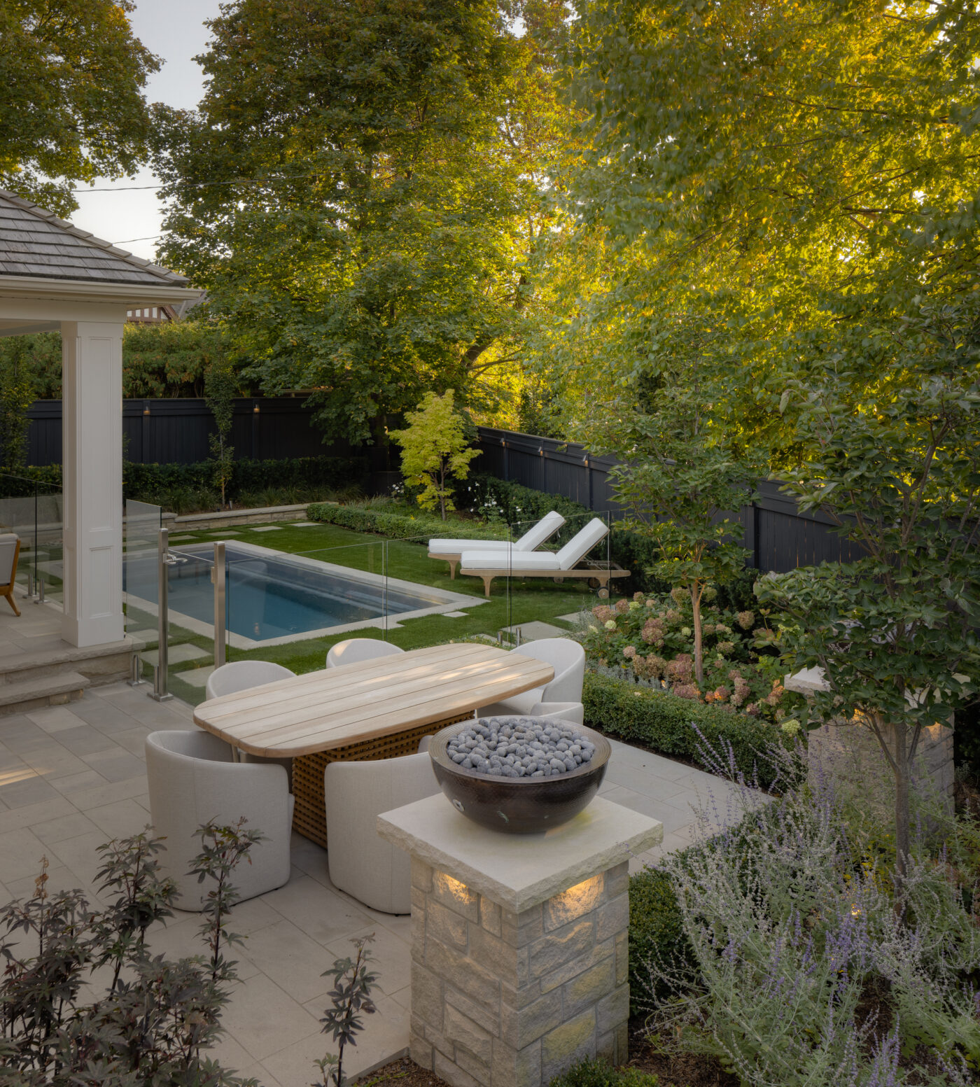 This Toronto courtyard landscape design is thoughtfully curated to support quiet mornings, mindful reflection, and fireside gatherings, with uninterrupted views to a plunge pool nestled below a covered porch. Designed as an extension of the home, the space balances luxury outdoor living with warmth and intimacy, proving that small urban landscapes can be both highly functional and deeply restorative.