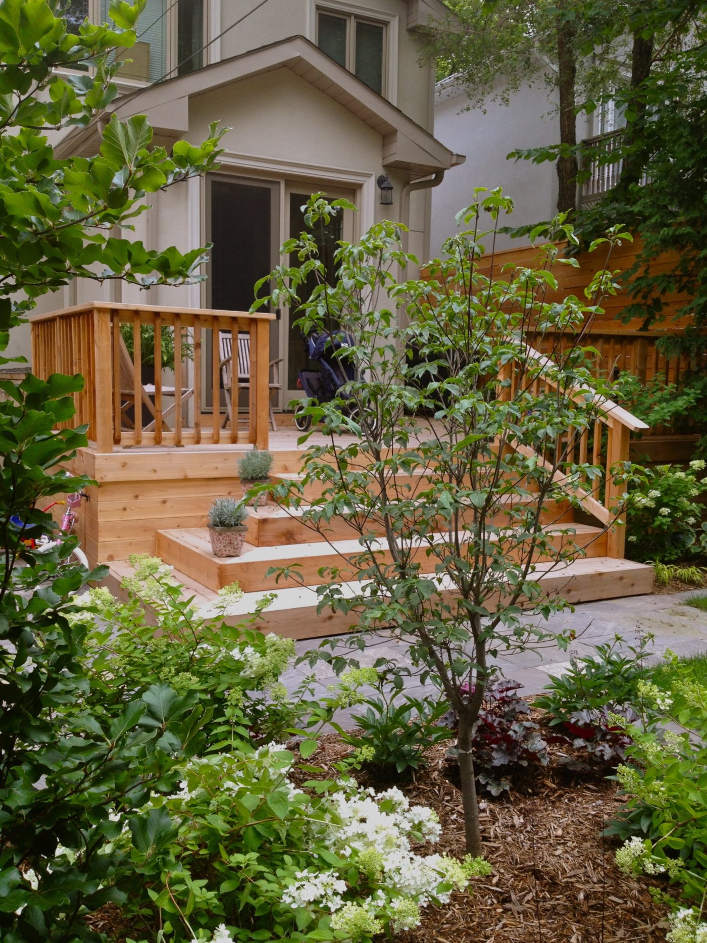 After completing this couple’s landscape design for their home in Riverdale a few years earlier, this young couple reached out to Jennifer to re-design their backyard at their new build in Leaside.