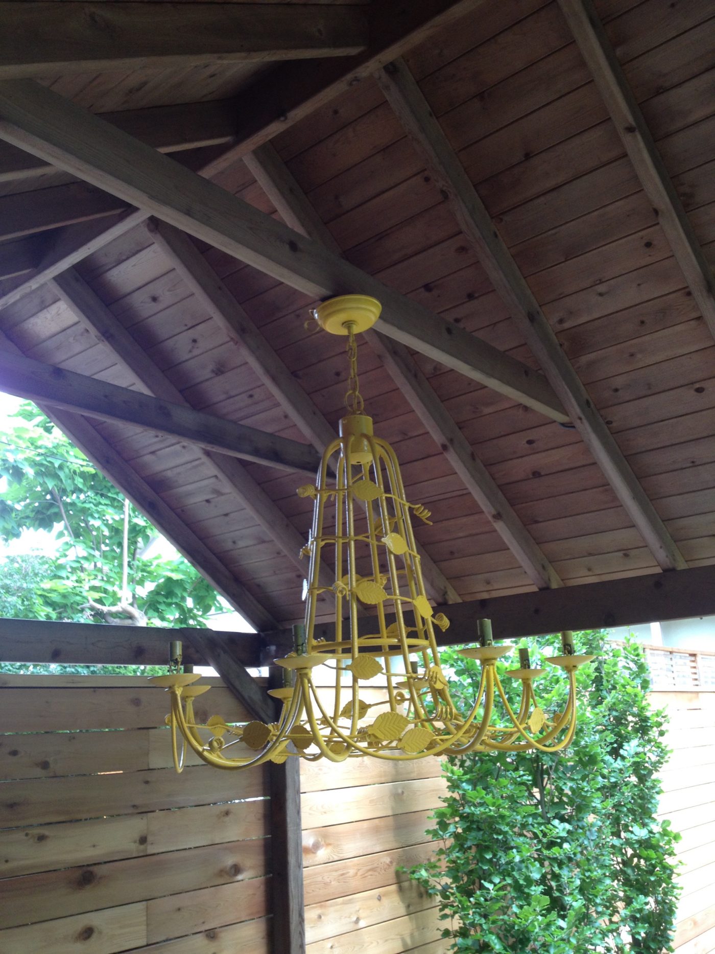 The existing landscape featured a basic yet unusable deck and an old pavilion in the back corner. A new expanded deck layout was the priority with wide inviting steps for additional seating for their young children and their friends. The lawn area was expanded with a brick border to create some formality and the pavilion became a destination, complete with a yellow chandelier. Much needed privacy was added with an indigenous plant palette in the more difficult to grow areas, and a Japanese Maple with columnar beech closer to home.