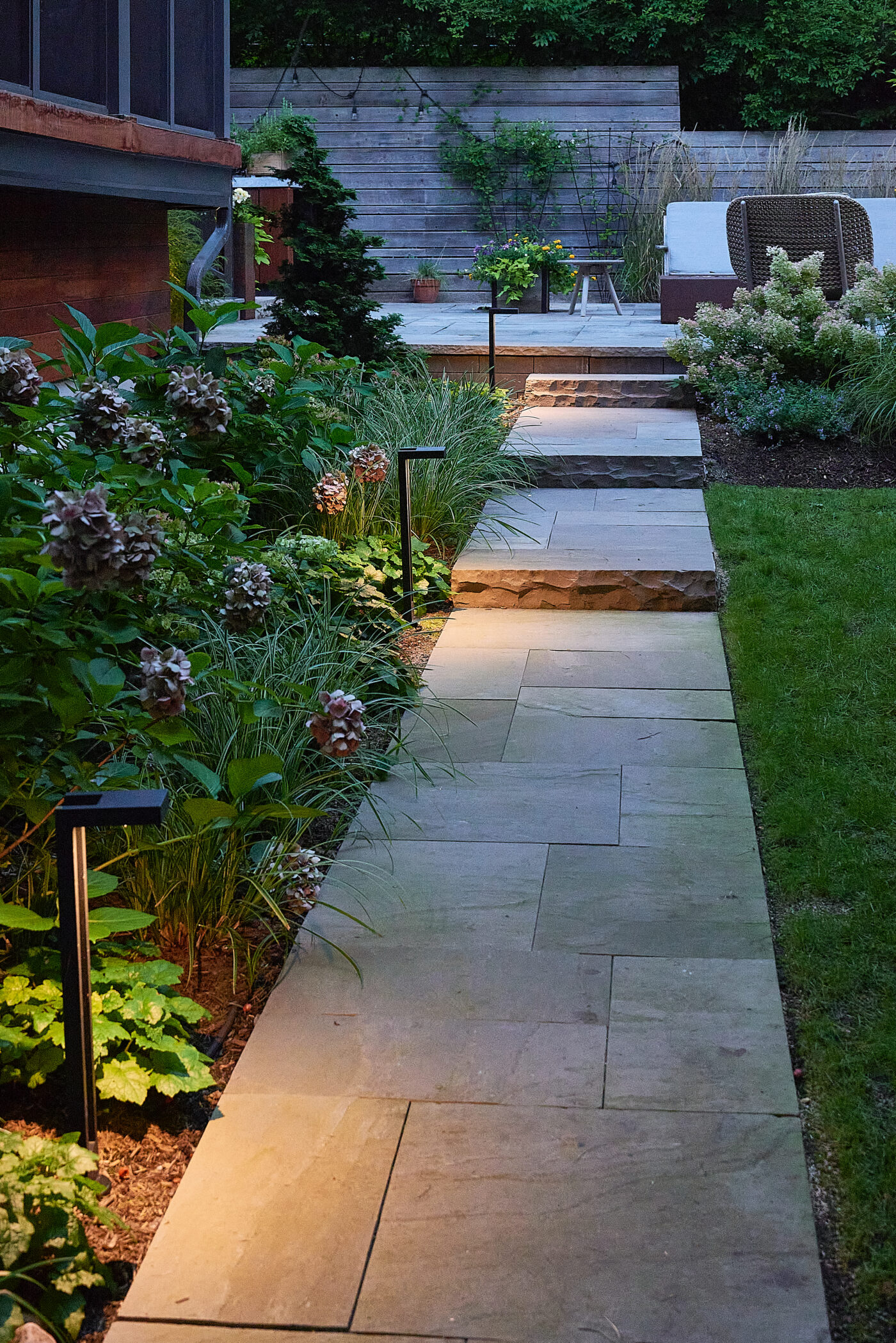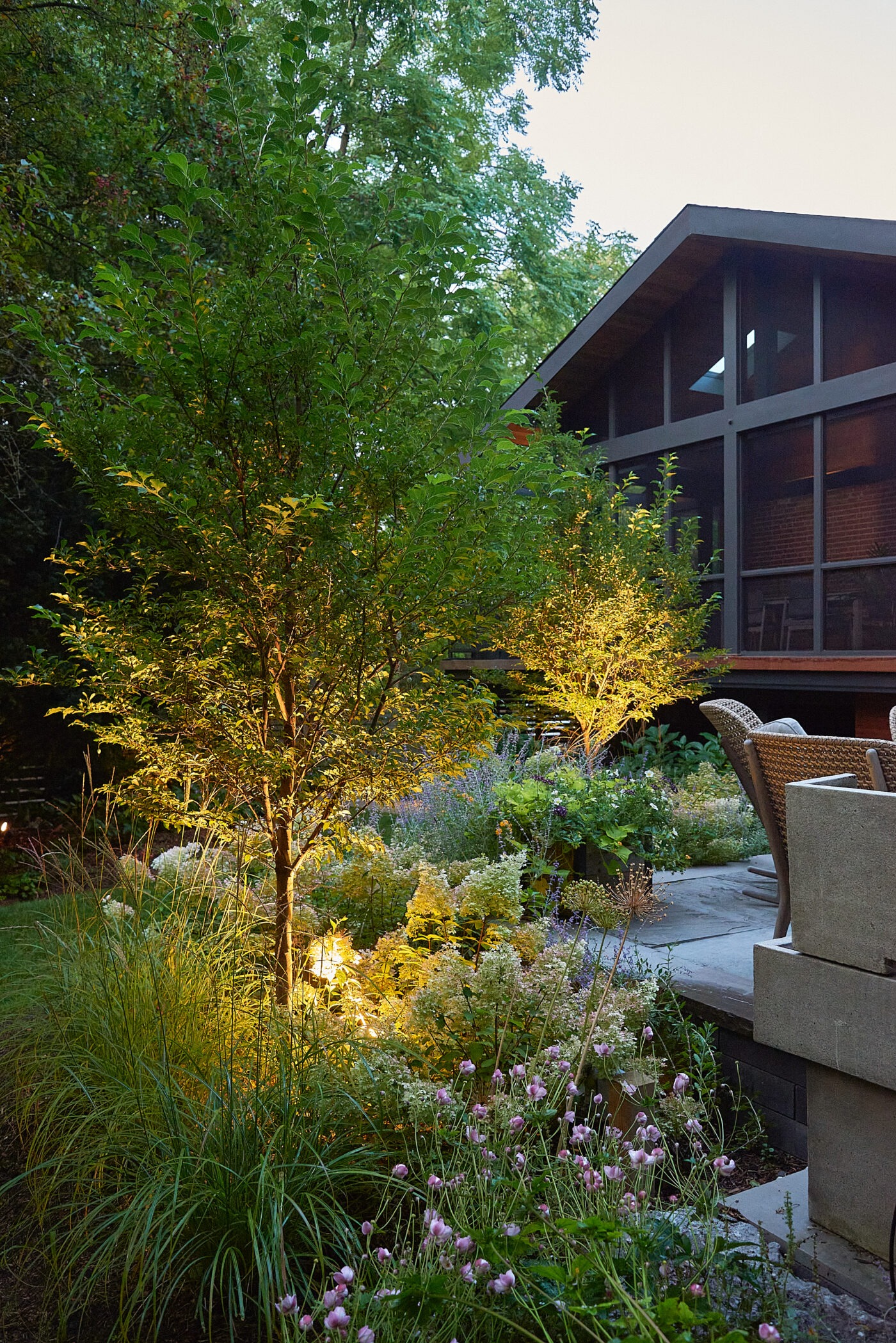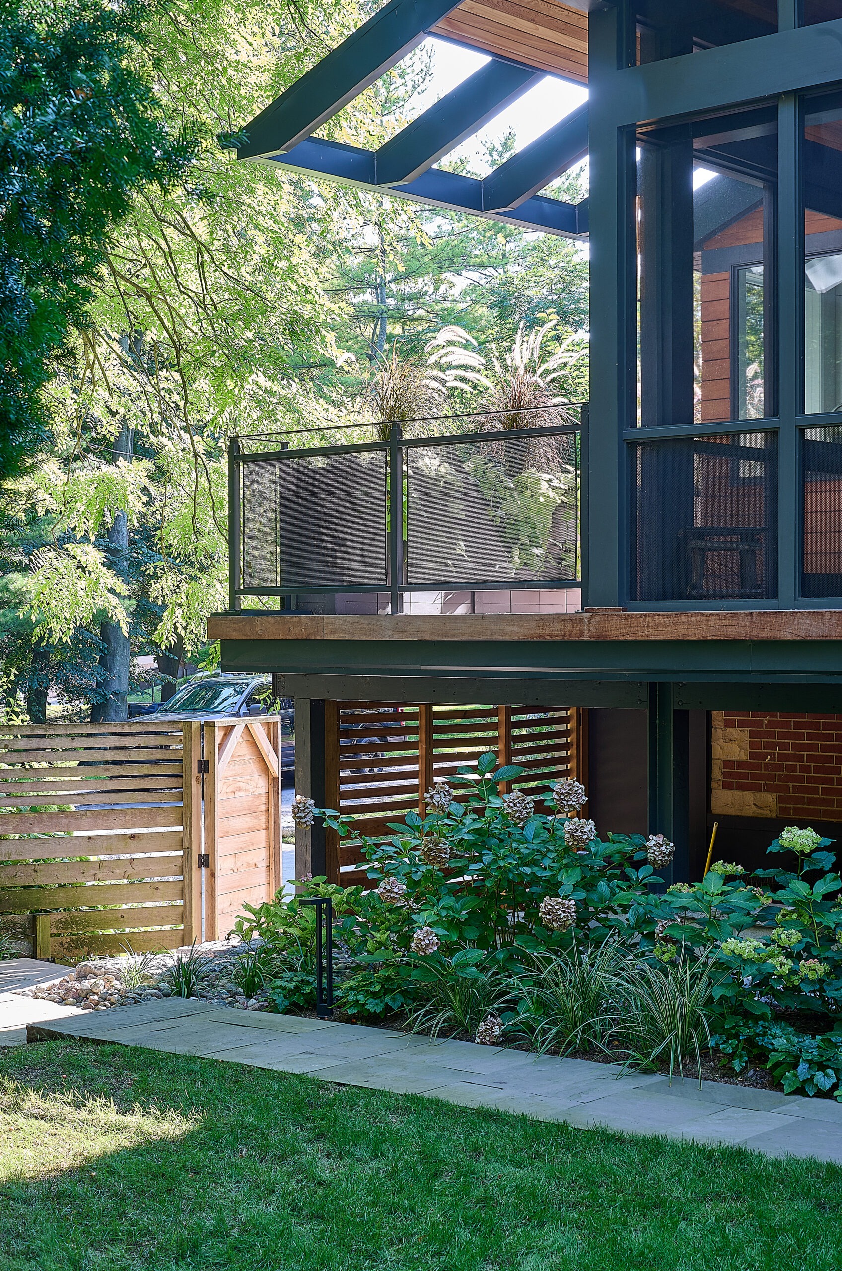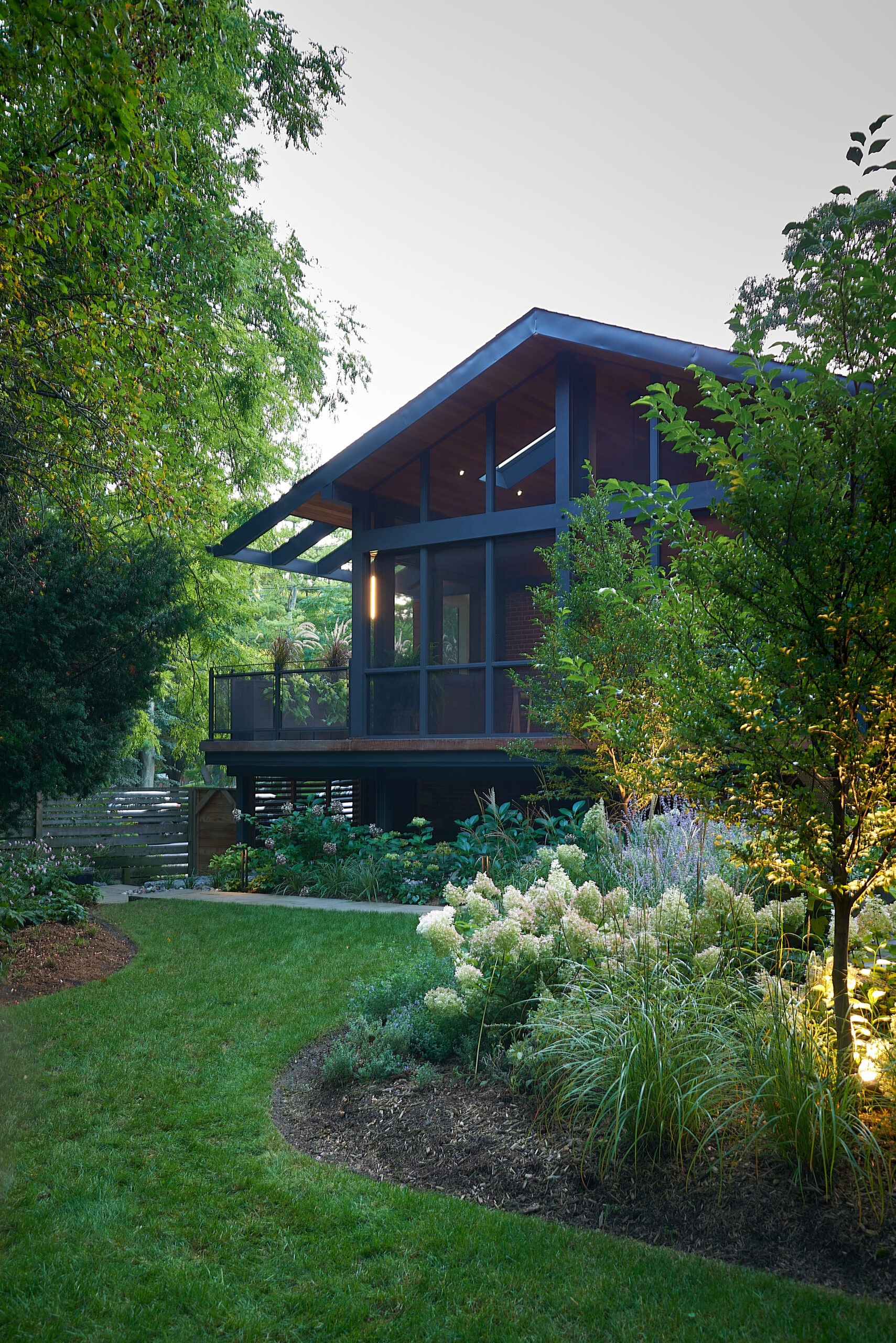 The existing deck has been transformed into a covered three-season room, seamlessly extending the home’s living space into the outdoors with an elevated view of High Park. Every element of this luxury Toronto backyard landscape balances sensory immersion, wellness, and functionality, creating a private retreat in the heart of the city where family, friends, and nature coexist in harmony.